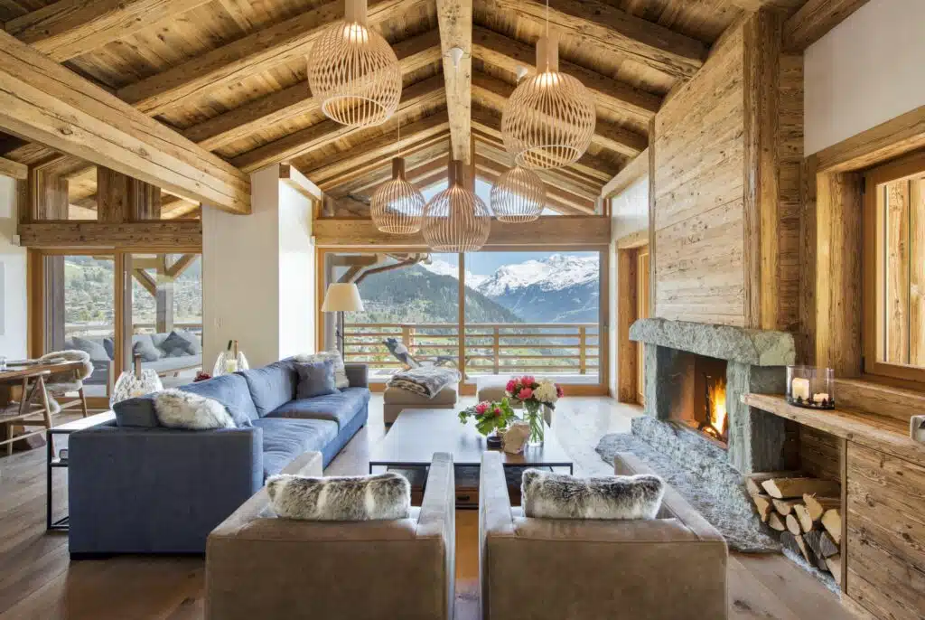- Open and bright, this Swiss chalet for rent features floor to ceiling French windows, open plan living and a fully equipped kitchen.
