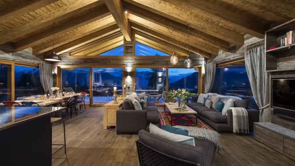 In the morning, take the time to enjoy a cup of coffee while admiring the view from the window. One of the soft sofas near the fireplace you can continue your holiday reading. After an afternoon of skiing, return to the comfort of your chalet and relax on the balcony overlooking the Rouge piste, with a glass of wine in hand. In the evening, gather your loved ones in the outdoor jacuzzi to relax after a busy day.