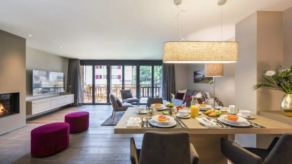 Get up bright and early to be among the first atop the Matterhorn Glacier Paradise, 500 metres from the apartment. Up there the view of the mountains is exceptional, taking in the snow-capped peaks of the French, Italian and Swiss Alps. Then head on over to the Theodul Pass, where the slopes are open 365 days a year. After a long day on the slopes, it’s back to Zermatt for a refined dinner at Michelin-starred restaurant After Seven.