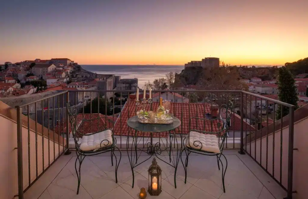 - This 350sqm private luxury villa sleeps a total of 8 people over two fabulously beautiful floors with sweeping views of Dubrovnik bay out of the charming shuttered windows.